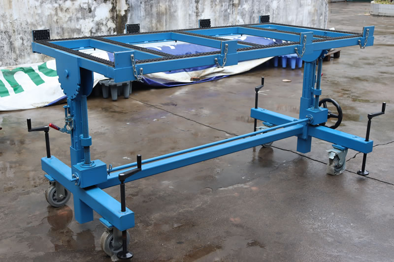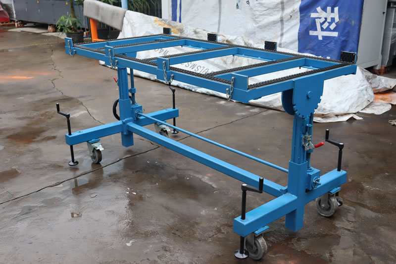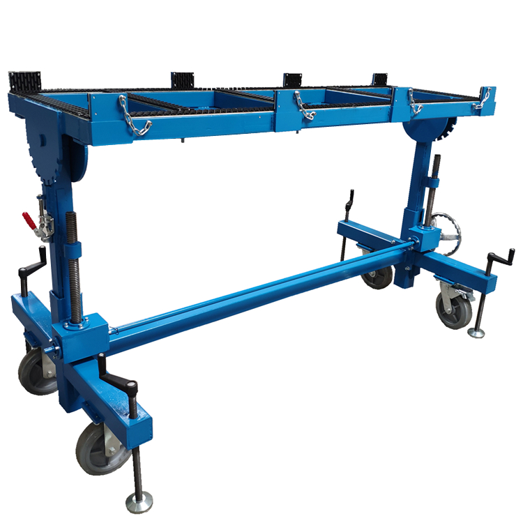 The work table is an ideal auxiliary tool for cutting, grinding or polishing the formed workpiece.?It can flip 0° to 90° and has a rubber cover and locking brake casters.